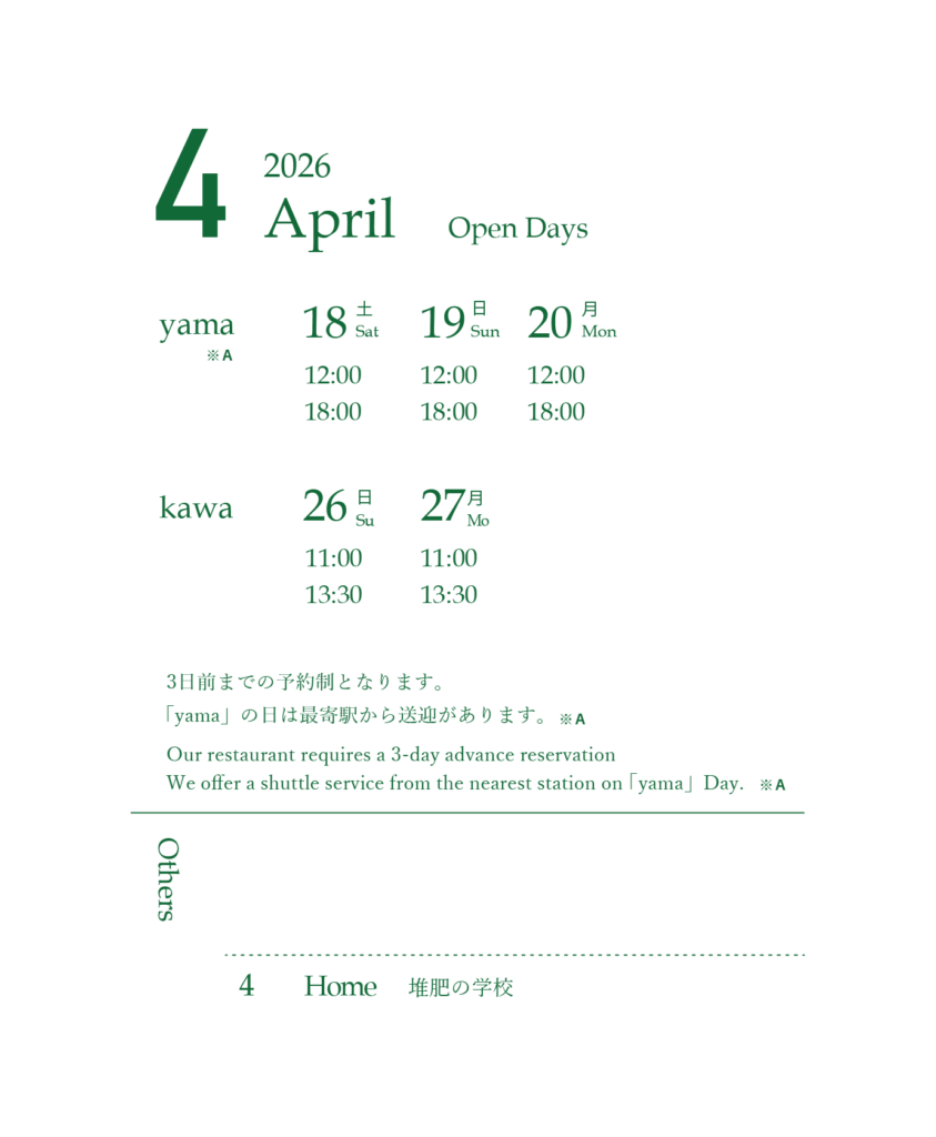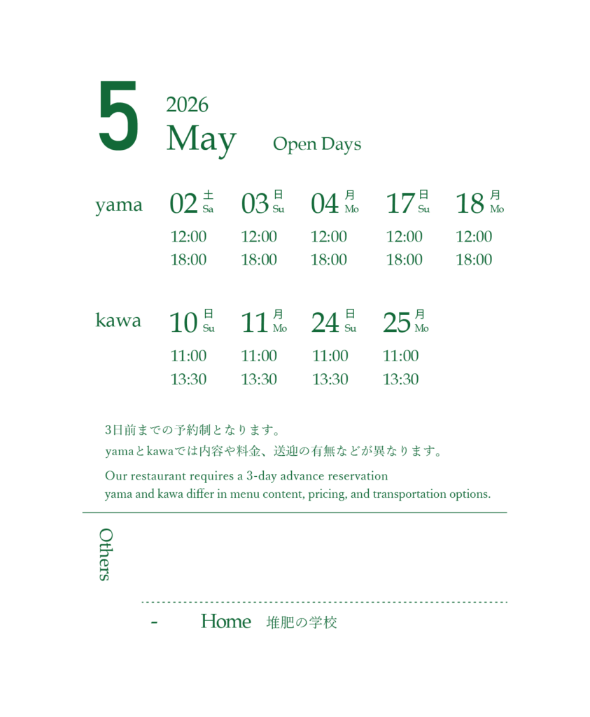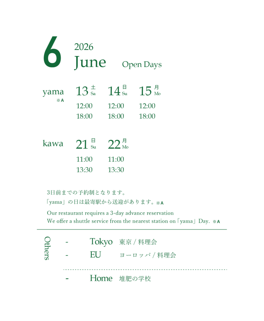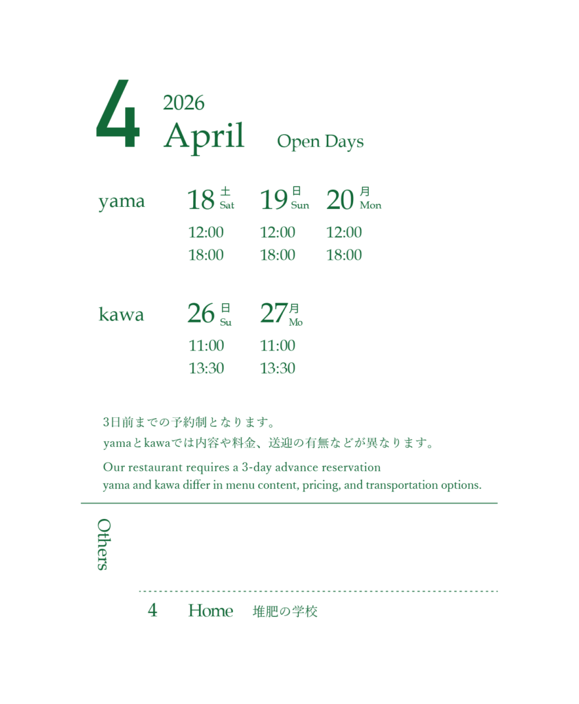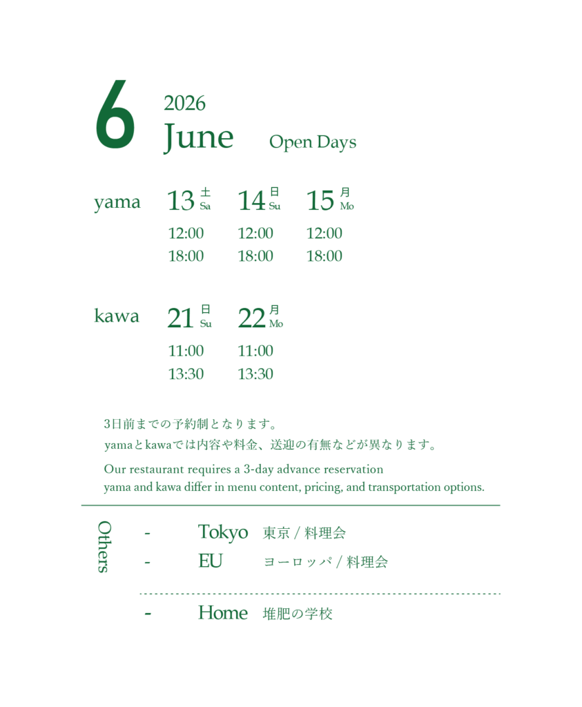 TOPお知らせ2026年 山のテーブルの御節料理 2025年10月1日 / おせち山のテーブル × WEEK神山 出張 山のテーブル in 徳島・神山 開催のお知らせ 2025年9月22日 / 出張山のテーブルSchlicht. Esslokal X Yama no Table ima koko – jetzt & hier. 02 開催のお知らせ 2025年8月1日 / イベントSpecial POP UP / MUKU 15th anniversary 開催のお知らせ 2025年8月1日 / イベント 営業日 About usSchedule & Reservation