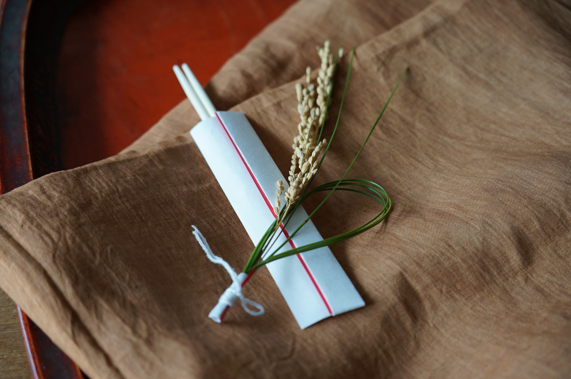 ※手作りの祝箸、米飾り付き